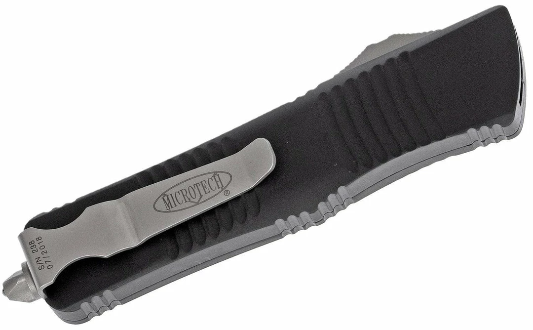 Microtech Troodon 3.06″ Stonewashed Double Edge Dagger Blade, Black Aluminum Handles