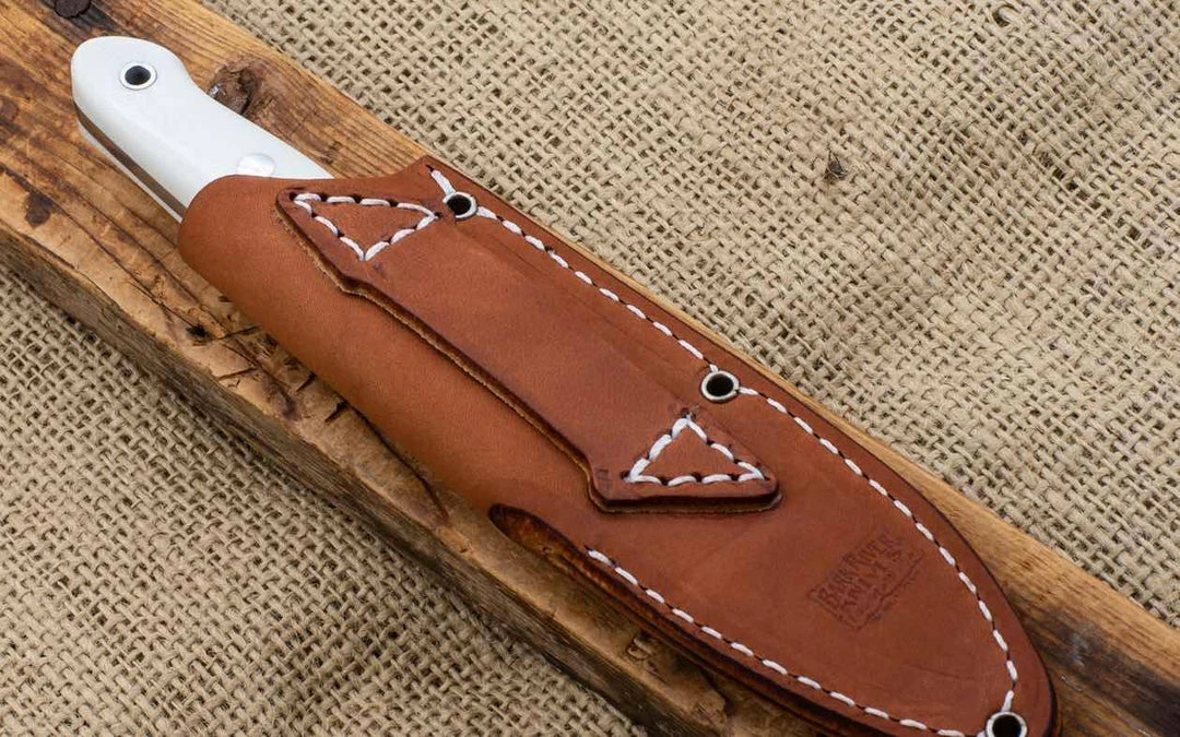 CruWear steel has incredible toughness (lateral strength), improved edge retention (abrasion resistance) relative to A2 and much greater corrosion resistance than A2 all while only being a little tougher to put an edge back on. Built of a full tang frame with comfortable contoured handles in the industries widest variety of materials, this Barkie has garnered a near cult following for good reason.