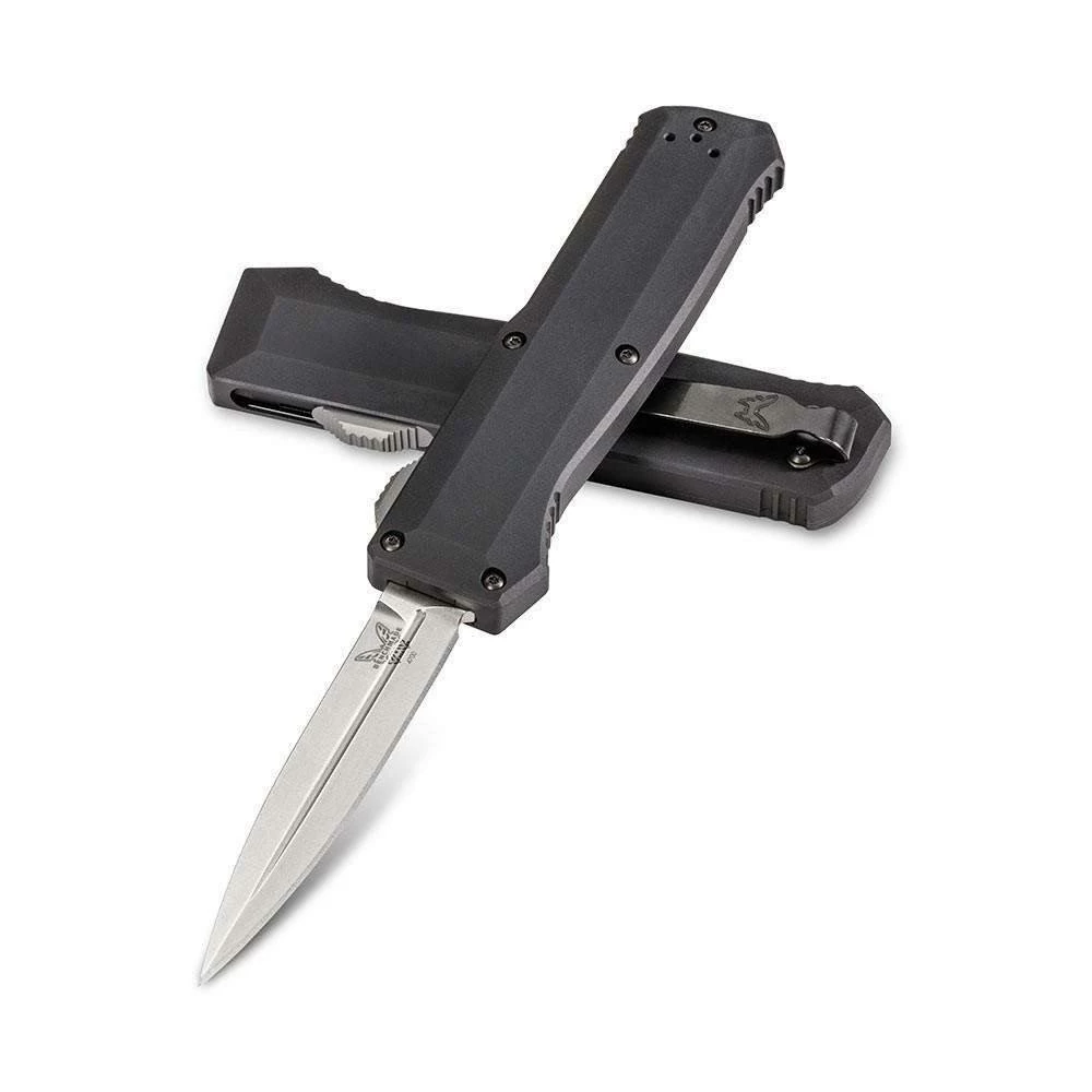The Benchmade Precipice is a sleek, spine-fire OTF automatic with a stealthy tactical design. A side mounted thumbslide provides smooth automatic action for rapid blade deployment. The handle is made from black anodized 6061-T6 aluminum that has been contoured for an ergonomic fit in hand. It’s outfitted with a spear point blade made from CPM-S30V steel for a high performance cutting edge. A reversible deep-carry pocket clip completes the fully ambidextrous design.