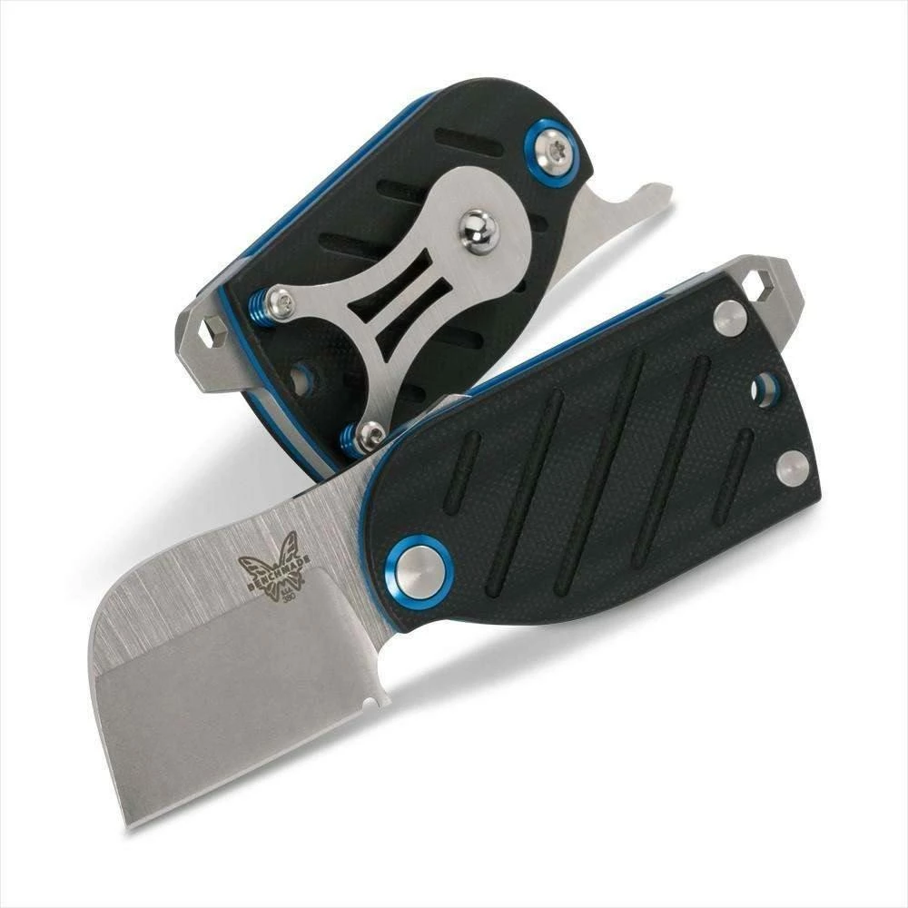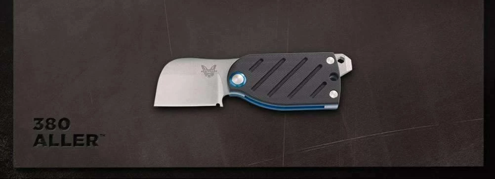 Benchmade Aller knife from Benchmade is the newest and most functional knife on the market! It has a black G-10 handle with a blue base layer and a satin finished CPM-S30V blade.