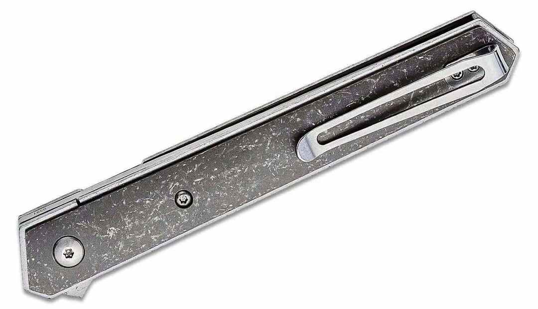 The Boker Plus Kwaiken Air Titan by Lucas Burnley extends the dynasty of the successful Kwaiken family by an elegant lightweight version. With its straightforward and practical shape, this modern pocket knife has become a true icon. The clean lines and slim design of this model have been further optimized to achieve an uncompromising reduction in weight, although the knife still holds the complete blade when closed. The flipper provides intuitive operation and additional safety, while the liner lock securely locks the VG-10 ball bearing blade with a satin-finished Hairline finish. The Gentleman Folder’s light-footedness is underlined by the high-quality titanium handle scales, which gives the knife an extremely modern look. The knife comes with a lanyard hole, detachable deep carry clip (tip-up/r), and a high-quality nylon case for storage.