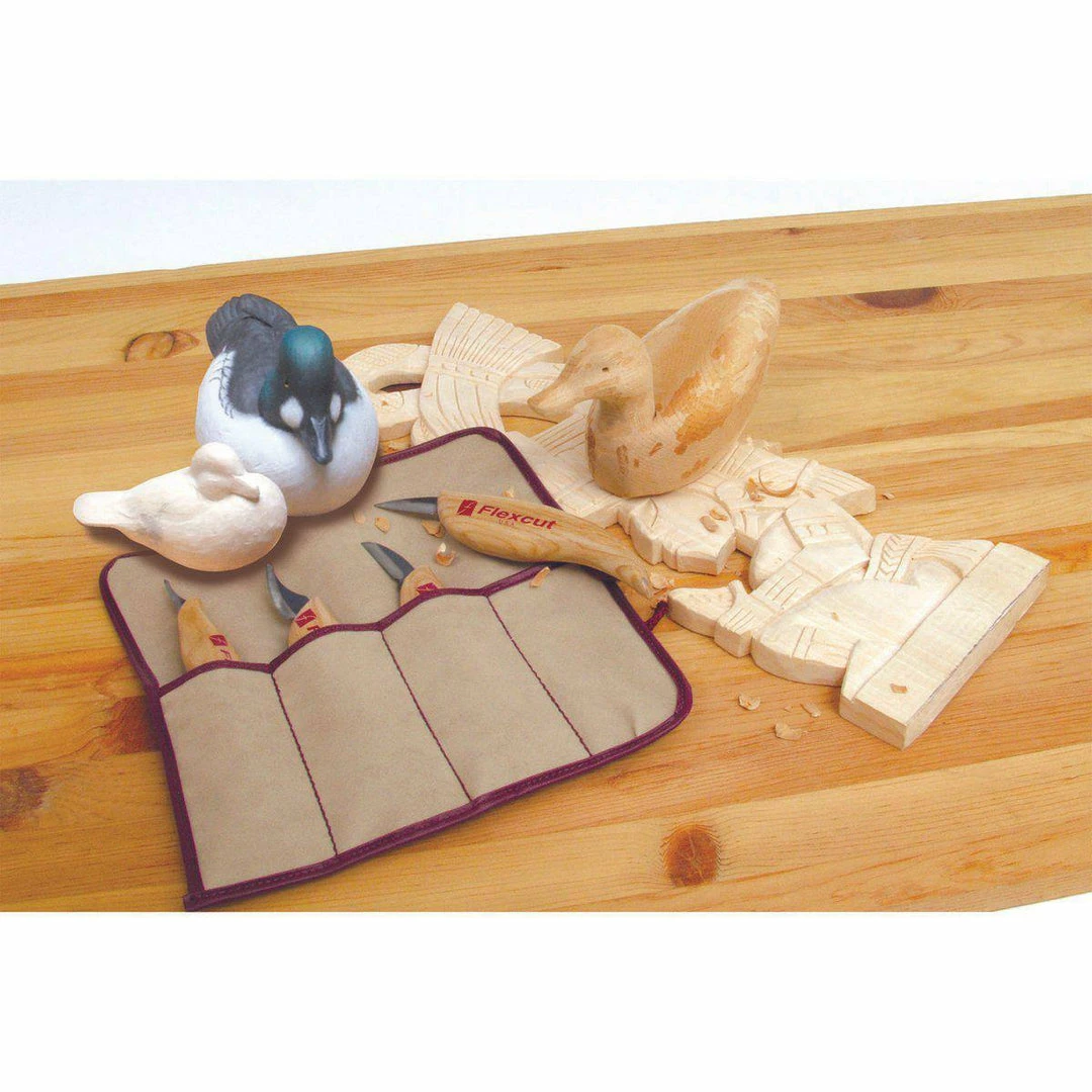 Carving Set We’ve combined the four most popular carving knives into one set. The set includes a cutting knife, detail knife, pelican knife, mini-pelican knife and tool roll and these knives are made of the same edge holding steel as Flexcut gouges and chisels. Comfortable handles let you carve for extended periods of time without hand fatigue.