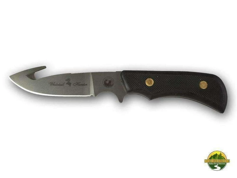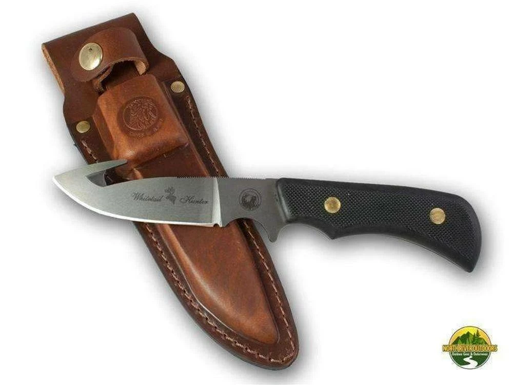 Same drop-point style as the Elk Hunter but designed with a gut-hook as well. Excellent for deer sized animals. Comes with an American made, vegetable tanned, oiled split grained cowhide sheath.