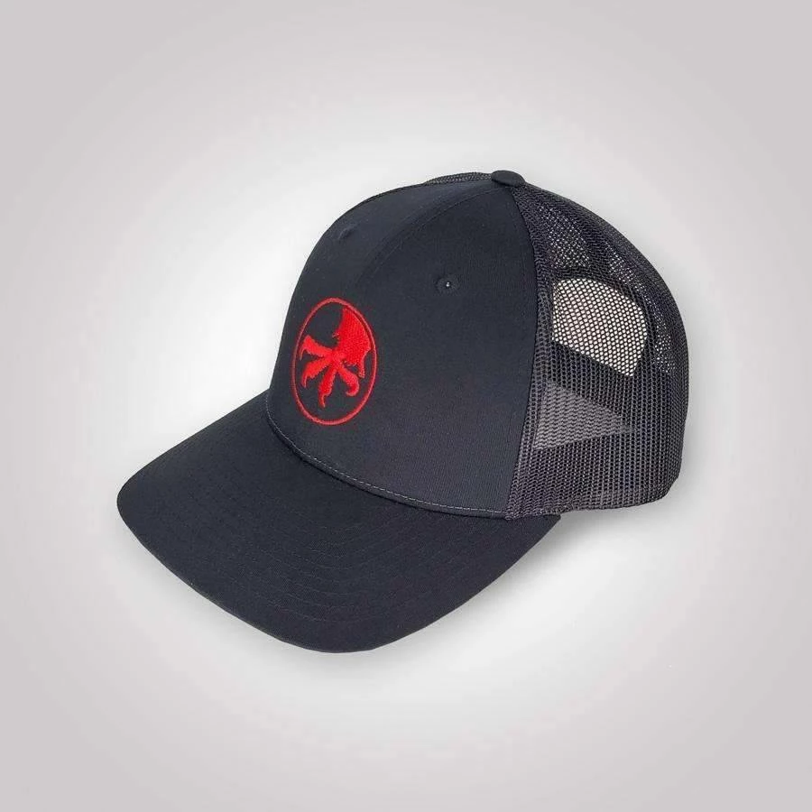 High Quality Hat by Microtech Knives! Made by Richardson 115 Low Pro Trucker Cap with mesh snap back, featuring centered Microtech talon logo.