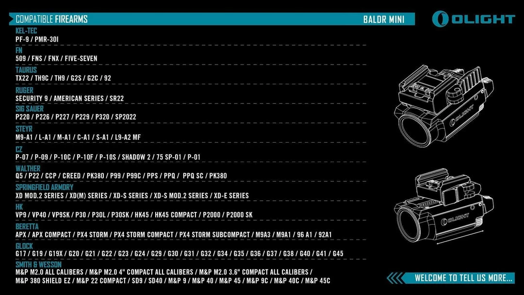 | Package Contents | BALDR Mini (battery built-in) x 1; Picatinny (MIL-STD-1913) Rail Mount Adapter x 1; HM2.5*4.5 Socket Cap Screw x 2; MCC (Magnetic Charging Cable) Special Edition x 1; H1.5 Allen Wrench x 1; Oval Point Set Screw x 1; Cone Point Set Screw x 1; User Manual x 1 |