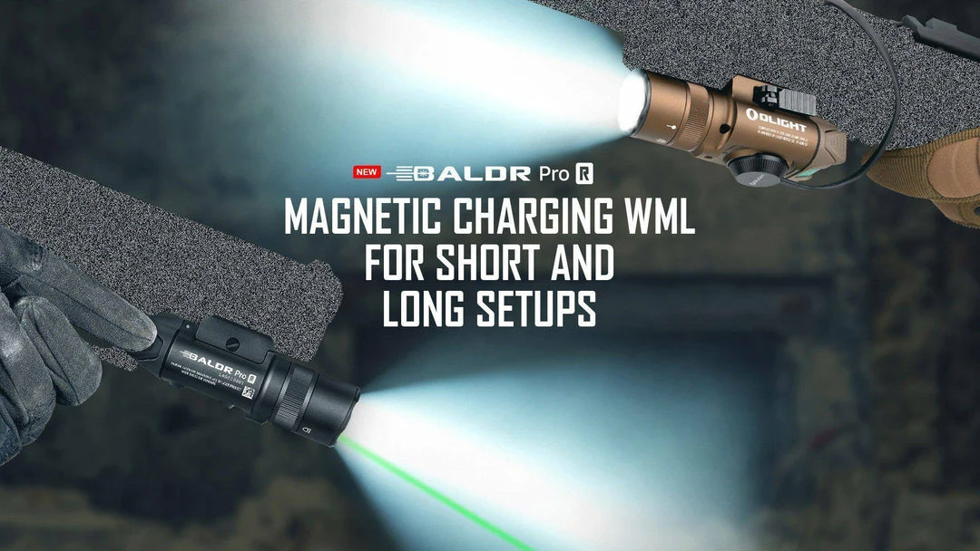 Olight’s brand new magnetic charging WML, Baldr Pro R is compatible with both short and long setups.