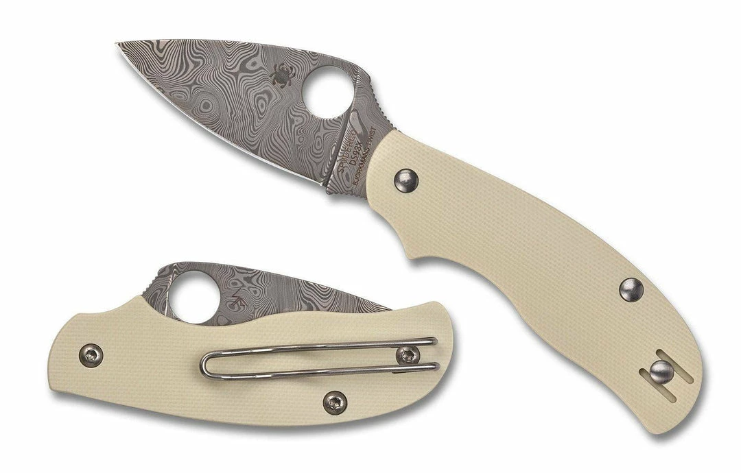 This limited-edition Sprint Run expression of the Urban elevates this non-locking SLIPIT design to all-new levels of sophistication. Its blade is meticulously crafted from Damasteel Björkmans Twist DS93X – a spectacular pattern-welded steel with a grain reminiscent of natural wood. Named after a Swedish bladesmith who wanted a more intense expression of Damasteel’s Dense Twist pattern, this remarkable blade material is produced by Damasteel’s proprietary powder metallurgy process, which ensures an exceptionally homogenous structure for superior cutting performance. No two pieces of this steel are identical – a fact that is clearly revealed by the full-flat grind of this knife’s blade. To showcase this stunning blade steel, the handle of this elite knife features smooth ivory G-10 scales that house its notched-joint non-locking mechanism, a stainless steel backspacer, and a reversible deep-pocket wire clip that provides left or right-side tip-up carry. A truly breathtaking expression of one of Spyderco’s cult-classic folders, this Urban Sprint Run is sure to be a coveted collector’s item.