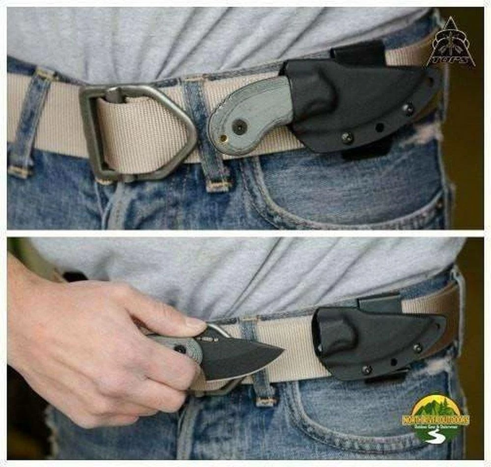 - Sheath Material: Kydex with a Rotating Steel Spring Clip