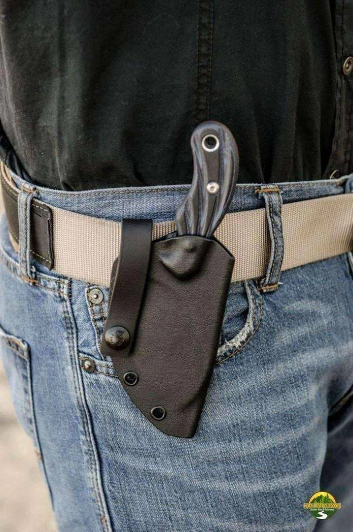 As you select your carry position for the Quick Skin, you’ll realize the Kydex sheath with its beta material loops was very well thought-out. It will allow you to carry it appendix (front), vertical (inside or outside the waistband/belt), horizontal, or even scout-style. The knife locks securely into place and stays there until you need it.