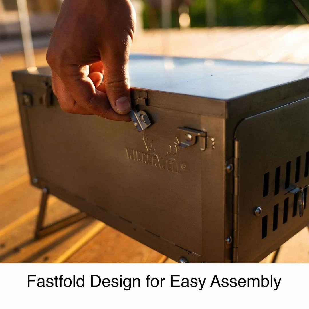 Ultralight and Ultra-packable, the Winnerwell Fastfold Titanium Wood Burning Tent Stove is the premier ultralight tent stove for backcountry skiers, hunters, and explorers. Ideal in lightweight stove-compatible shelters like pyramid and teepee tents, the Fastfold Titanium Stove folds flat and the flue pipe rolls into a compact tube—the entire kit weighs only 4lbs. The Fastfold design sets a new standard in reliable, hassle-free set-up. There are no hardware parts to lose or fumble with cold hands, simply fold the walls into place and secure with integrated clasps. Plus, with the top of the stove removed, this stove functions well as an ultralight fire pan for river runners and backpackers in sensitive wilderness areas.
