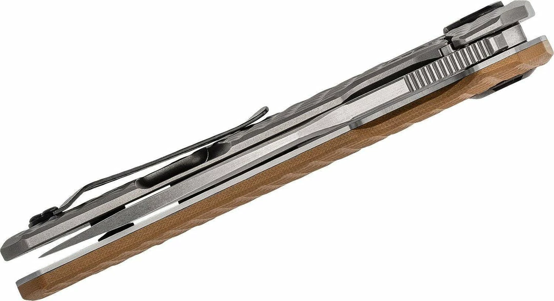 - Handle Material: Coyote Tan G10 with Bead Blasted Titanium Lock